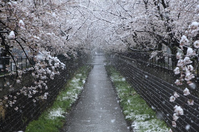 神奈川某所の自宅近所にて。昨年は関東では数十年ぶり?に桜の満開と降雪が重なりました。この頃はコロナが年明けまで続くなど予想だにせず…。(佐野)